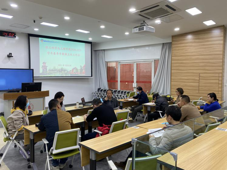 春耕正当时�2021�3�12日下午,轻工科学与工程学�为加强新学期班主任工作指导与本科生各年级学习指导帮扶�分别在望江校区和江安校区同时召开各年级的班主任工作会、本科年级大会暨班主任与学生见面会。学院何有节院长、冯国涛副书记、教导员、教务老师及学院全体班主任老师出席会议�