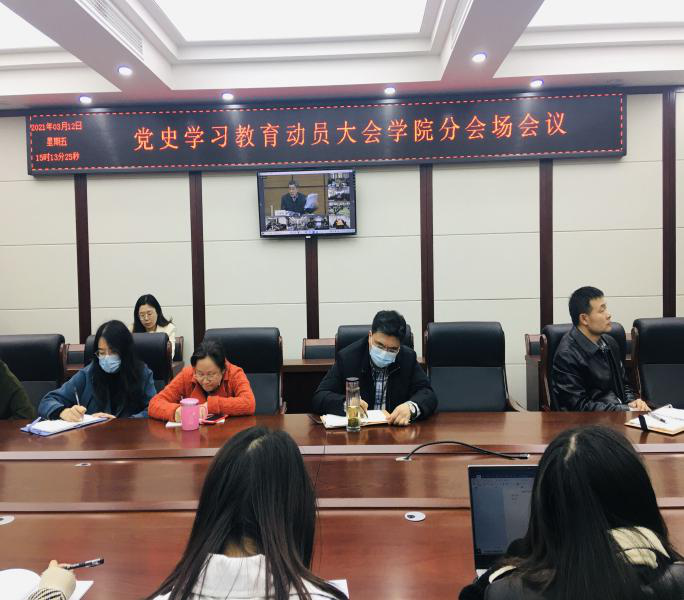党史学习教育动员大会在望江校区明德楼四楼召开。本次会议由李言荣校长主持,王建国书记作动员讲话。按照学校“主会场+视频分会场”的安排部署,学院副处级以上干部、党支部支部书记在纺工附楼205会议室分会场参会。