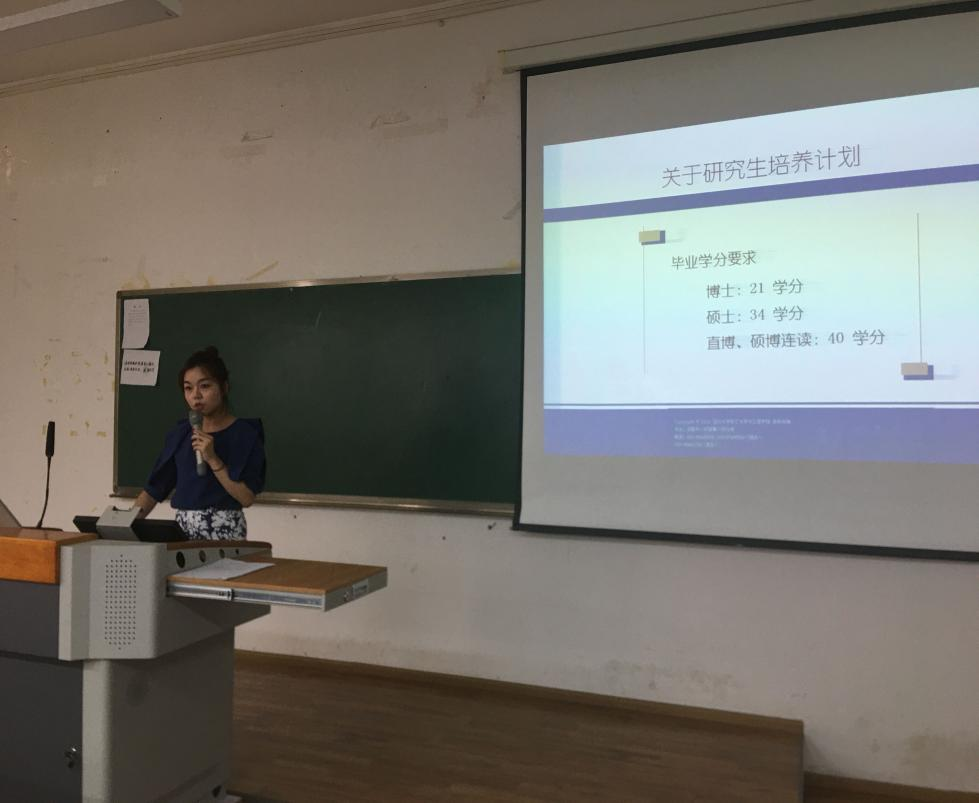 分管研究生工作何强副院长对学院学位点设置、学科方向及建设基础、授位标准等作了全面的介绍,让同学们对培养基础和培养要求有了更为深刻的认识�