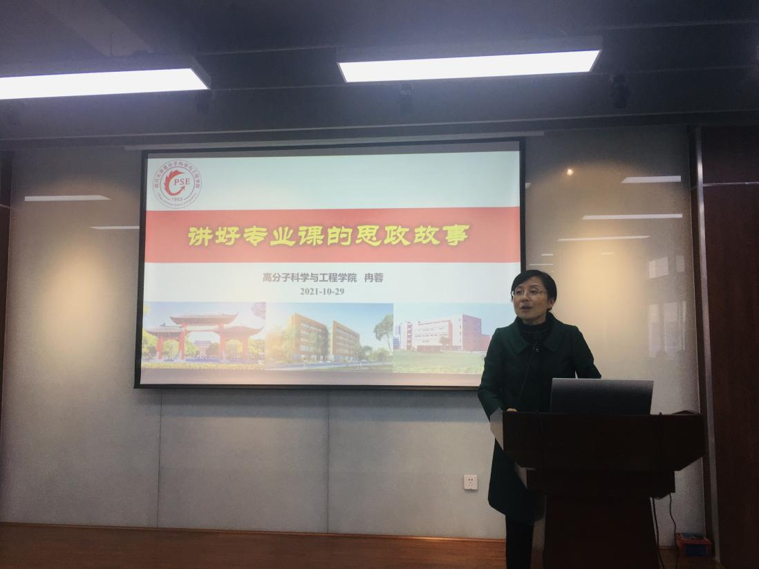 教师教学发展中心教学导师冉蓉教授做了题为“讲好专业课的思政故事”的专家辅导报告。冉教授从课程思政的育人目标及思路、所在学科课程思政建设的特色举措及案例、课程思政素材库建设等方面进行悉心讲授和精彩分享。