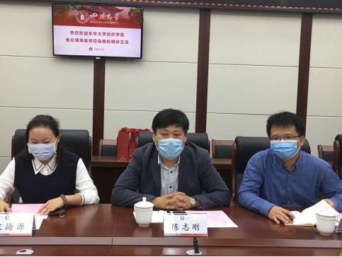 冯国涛副书记向陈书记一行人员介绍了学院学生工作整体情况。同时,陈书记也围绕东华大学纺织学院学生规模、学生工作建设等方面展开介绍。随后,双方老师重点就创新人才培养方式方法、学生党建工作品牌打造、学生学风建设、辅导员及班主任队伍建设等方面进行广泛而深入交流。
