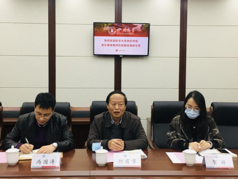 ,就学生党建工作、创新人才培养、学生工作等方面进行调研交流。学院何有节院长、党委冯国涛副书记、学生事务办公室全体教师参加了交流活动。会议由冯国涛副书记主持。