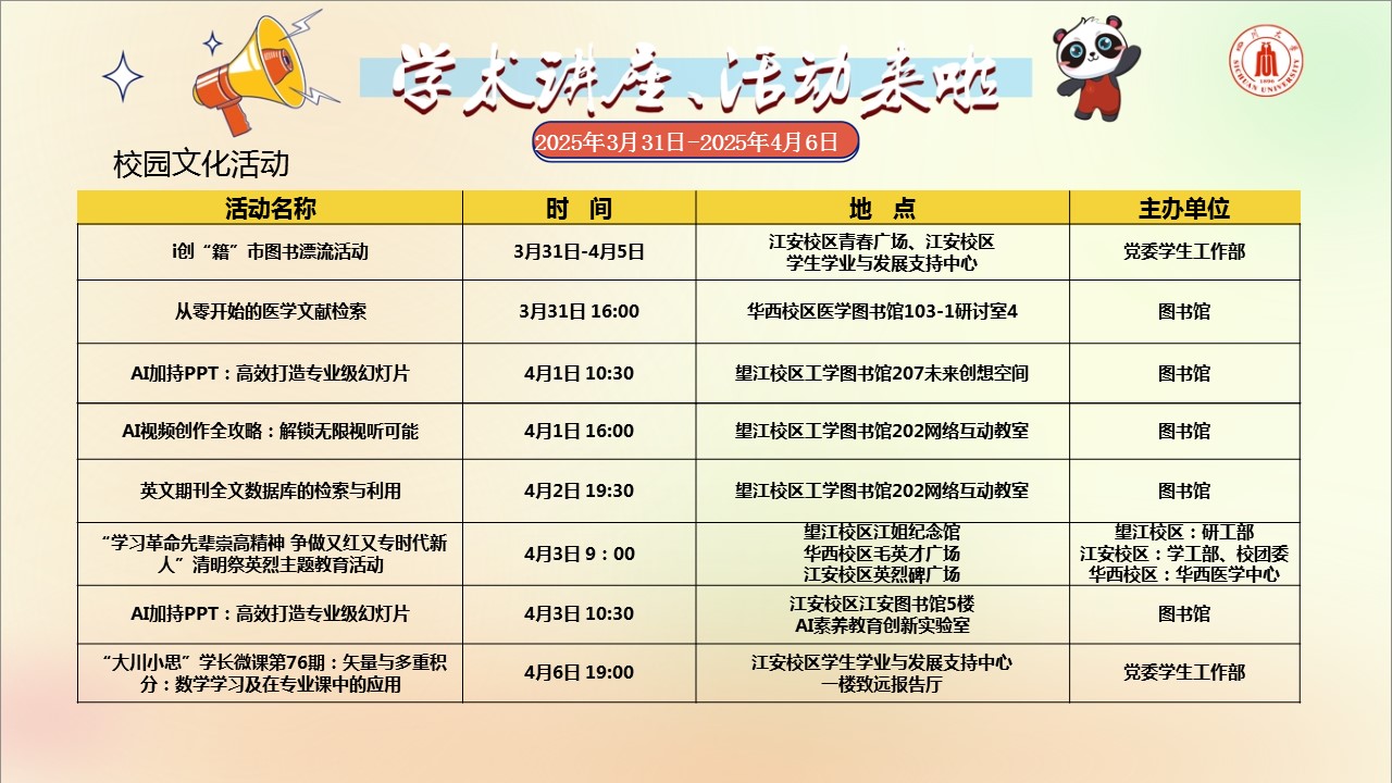 校园文化活动预告(2025年3月31日-2025年4月6日)