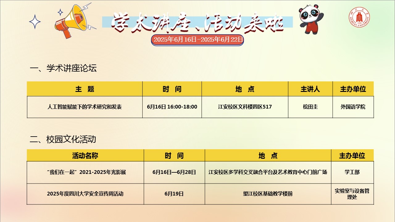 校园文化活动预告(2025年6月16日-2025年6月22日)