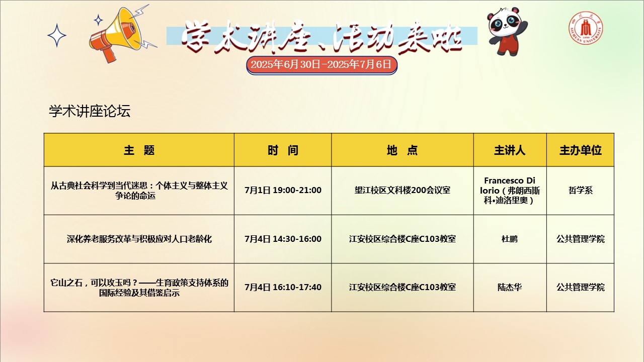 校园文化活动预告(2025年6月30日-2025年7月6日)