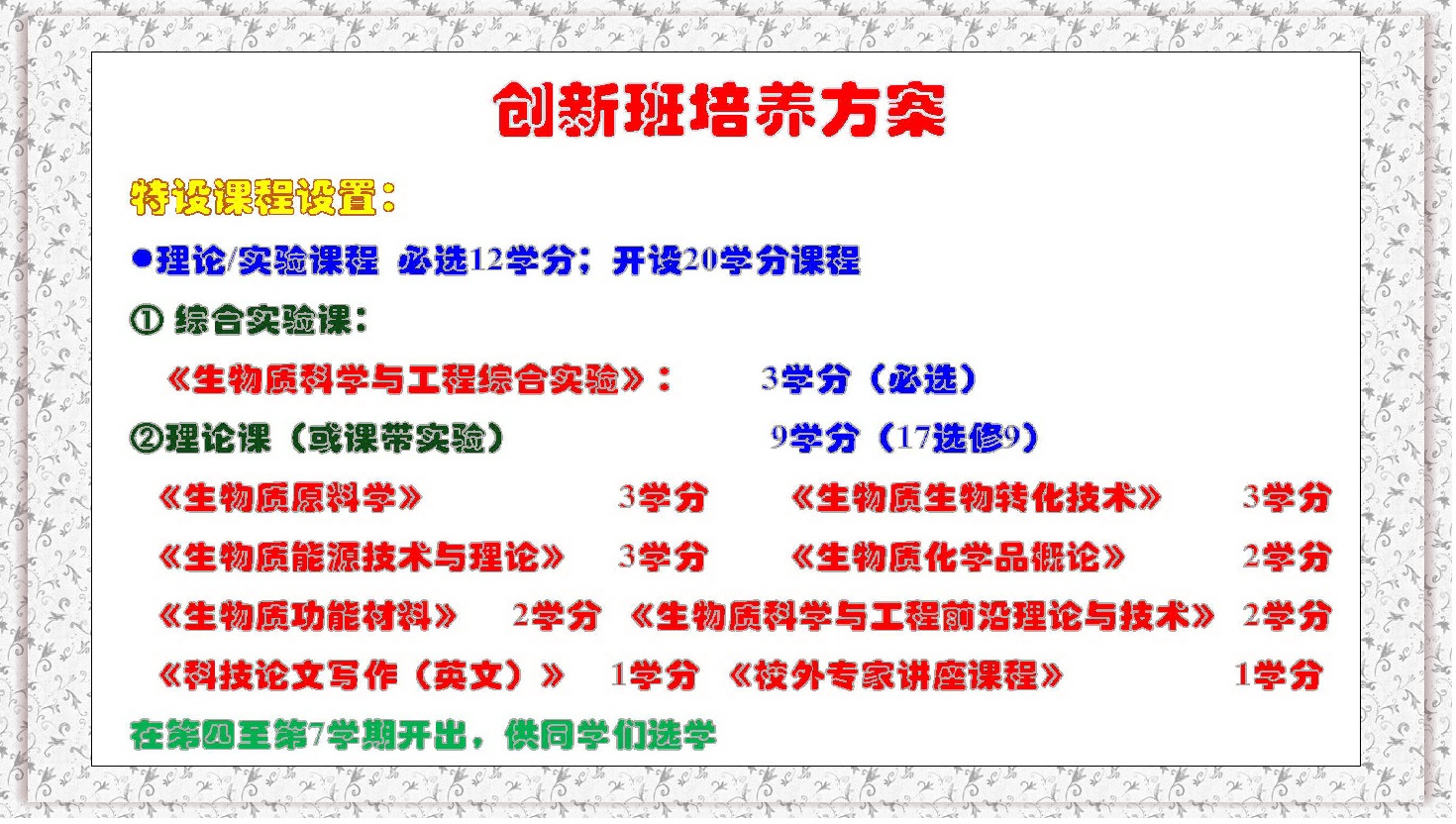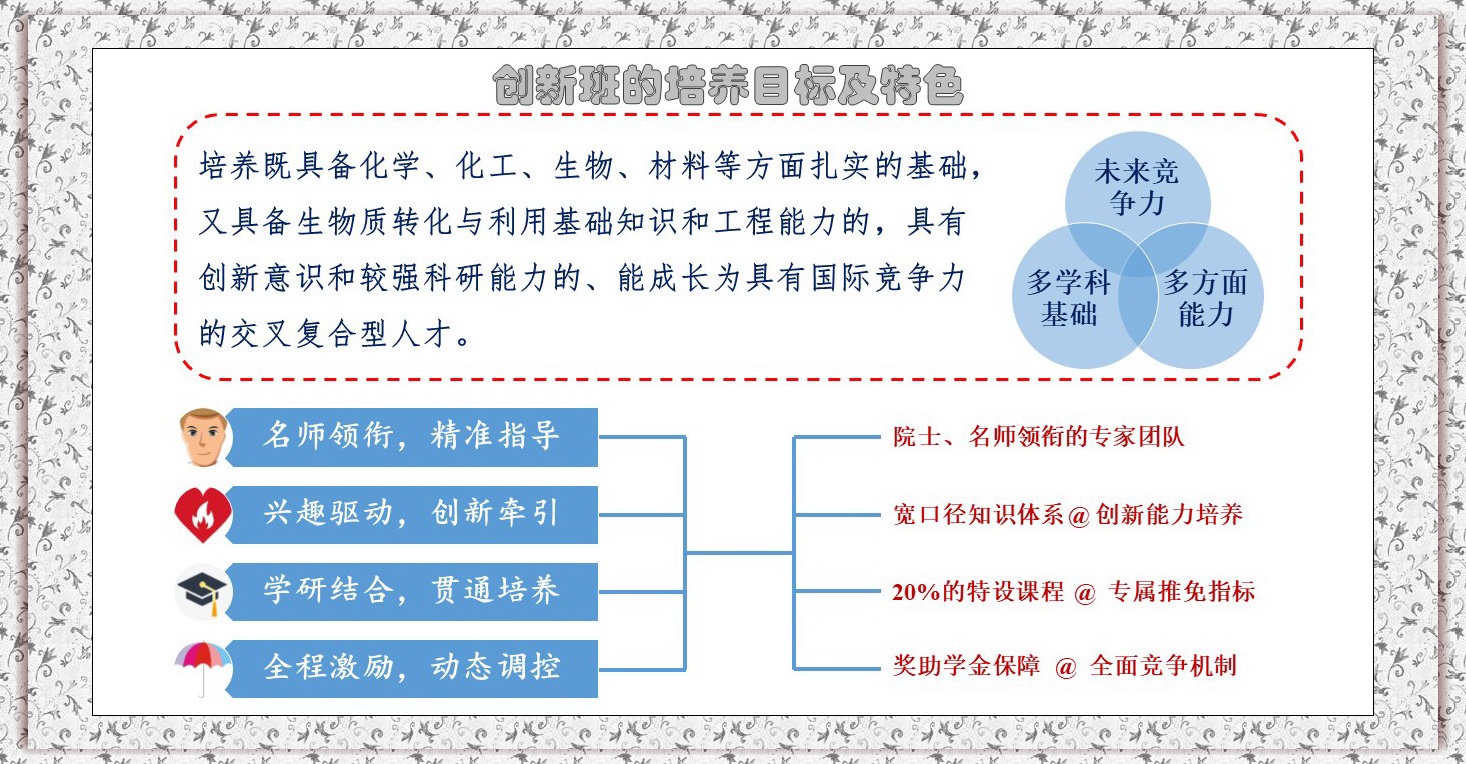 一、生物质科学与工程创新班2020�选拔条件、考核方案、操作指南详见教学处通知。(点击去往�