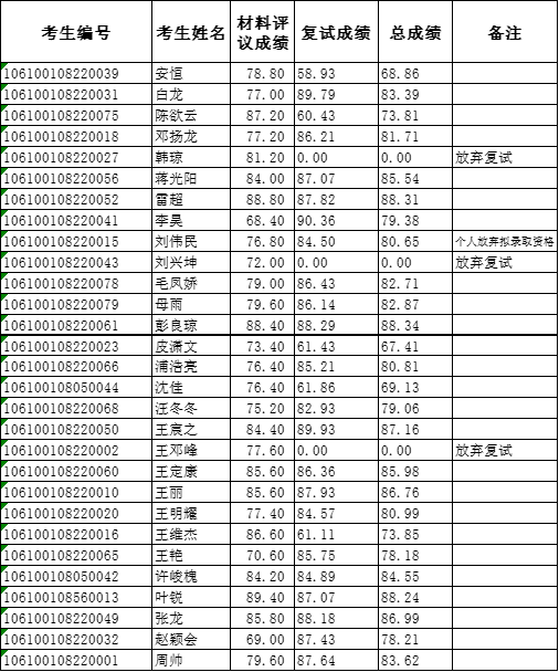 AV研究所 /制革清洁技术国家工程实验室2020年博士研究生招生(普通招考)成绩公示