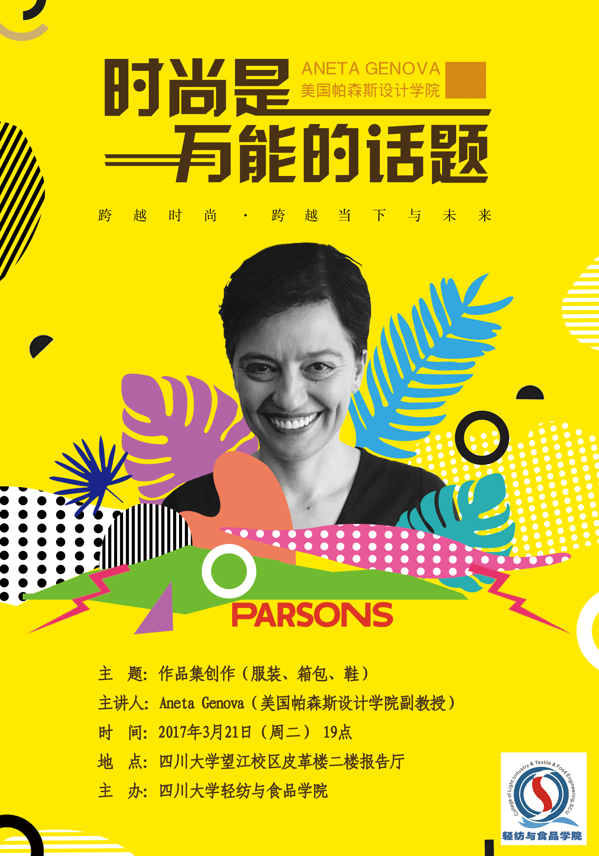 轻纺与食品学院作为位居世界第二、全美第一的艺术与设计学院,帕森斯设计学院的服装与服饰设计专业排名位于全美第一名,著名校友包括Tom Ford,Donna Karan, Marc Jacobs,Anna Sui,Yohji Yamamoto等;Aneta Genova曾担任过Marc Jcobs助理设计师、Polo Ralph Lauren时装、配饰设计师、Ralph Lauren Collection Footwear饰品设计师;现担任帕森斯设计学院副教授、Hyper Island, NYC 研究员,在时装与技术、服装配饰设计、可穿戴服装技术等领域颇有建树。