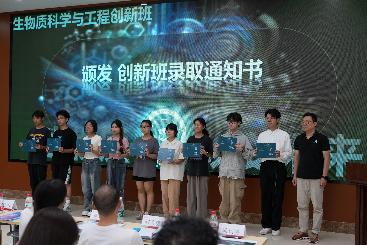 紧接着,李天富书记、彭必雨院长、林炜教授、迟原龙副院长为同学们颁发了创新班录取通知书,石碧院士为创新班班主任颁发了聘书�