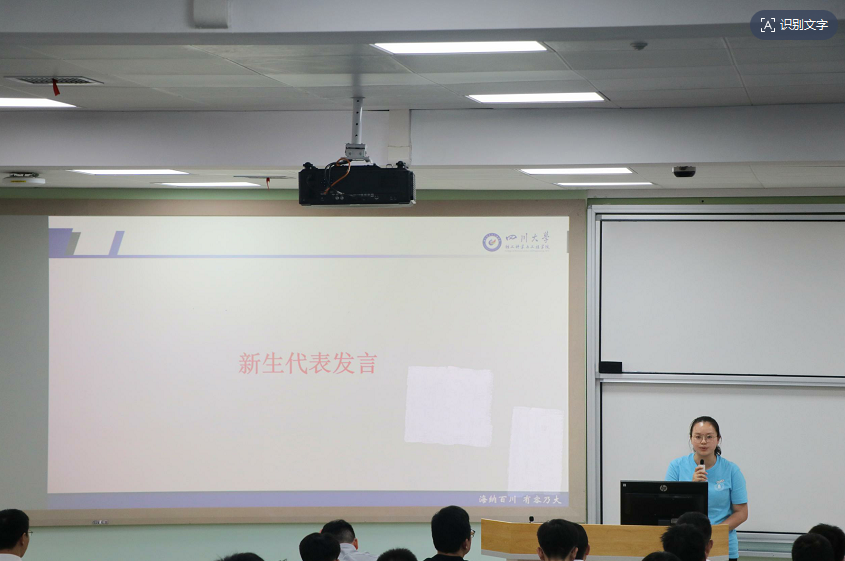 随后,教师代表王亚楠教授发言。王亚楠教授给大家分享了自己在川大的求学生活,同时提出了四点建议:一是保持好奇心和求知欲;二是学会自我管理和时间规划;三是积极参加校园活动与社会实践;四是保持积极乐观的心态。“愿你们怀抱梦想又脚踏实地。”这是王亚楠教授对同学们提出的期许�