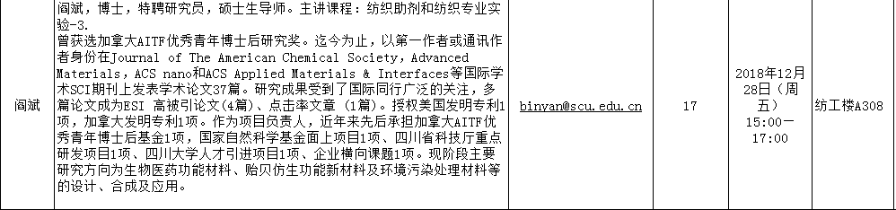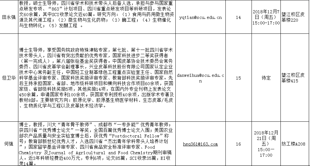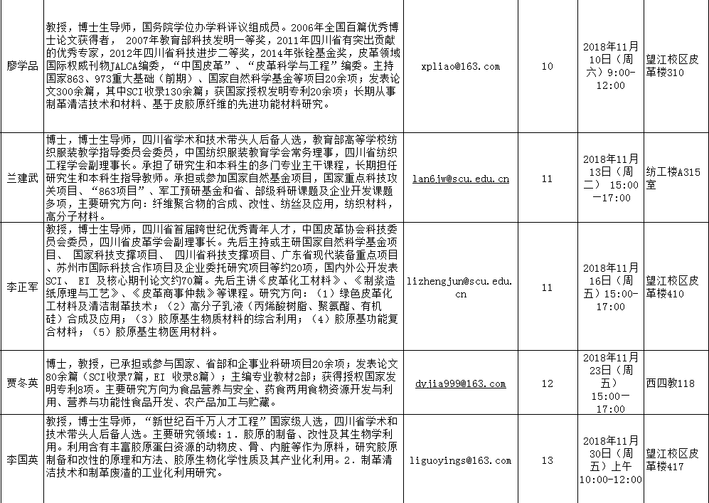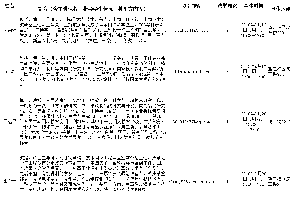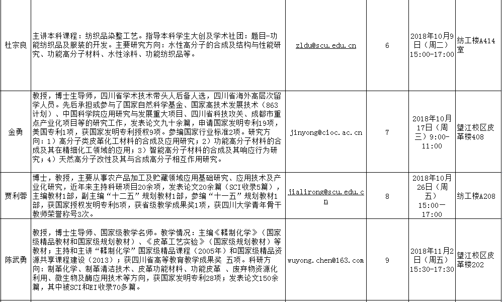2018-2019学年秋季学期“教授开放日”安排表