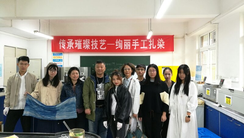教研室教师与专业学生参加了来自【青舍染艺】的校外专家张湜的扎染艺术课程与实践活动