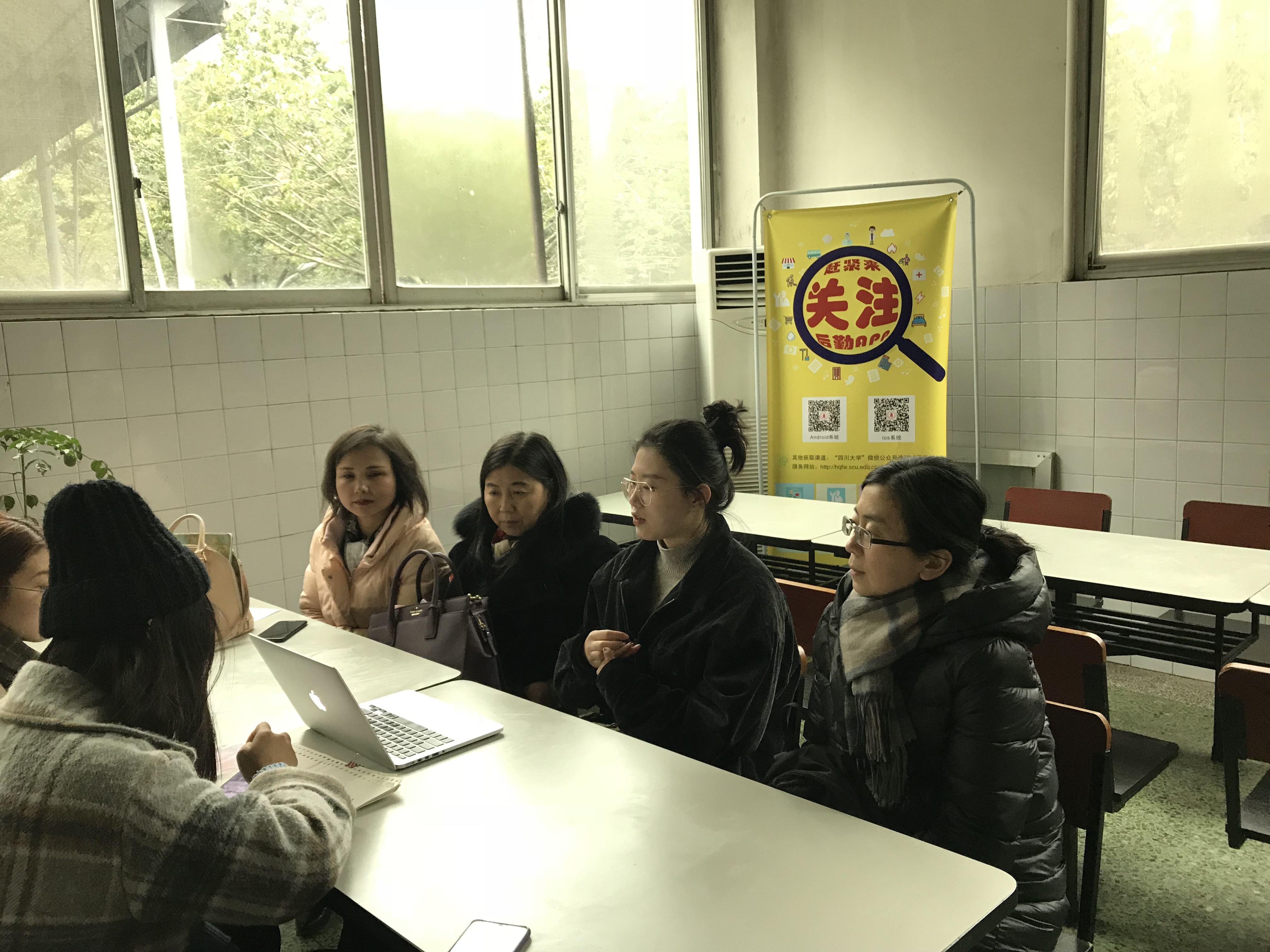 2018.12.14 毕业论文开题报告时纺工楼大楼一楼化纤所出现泄露事故,为了安全同时工作照常进行,师生撤出大楼,在露天坝、食堂等环境中坚持进行开题报告�
