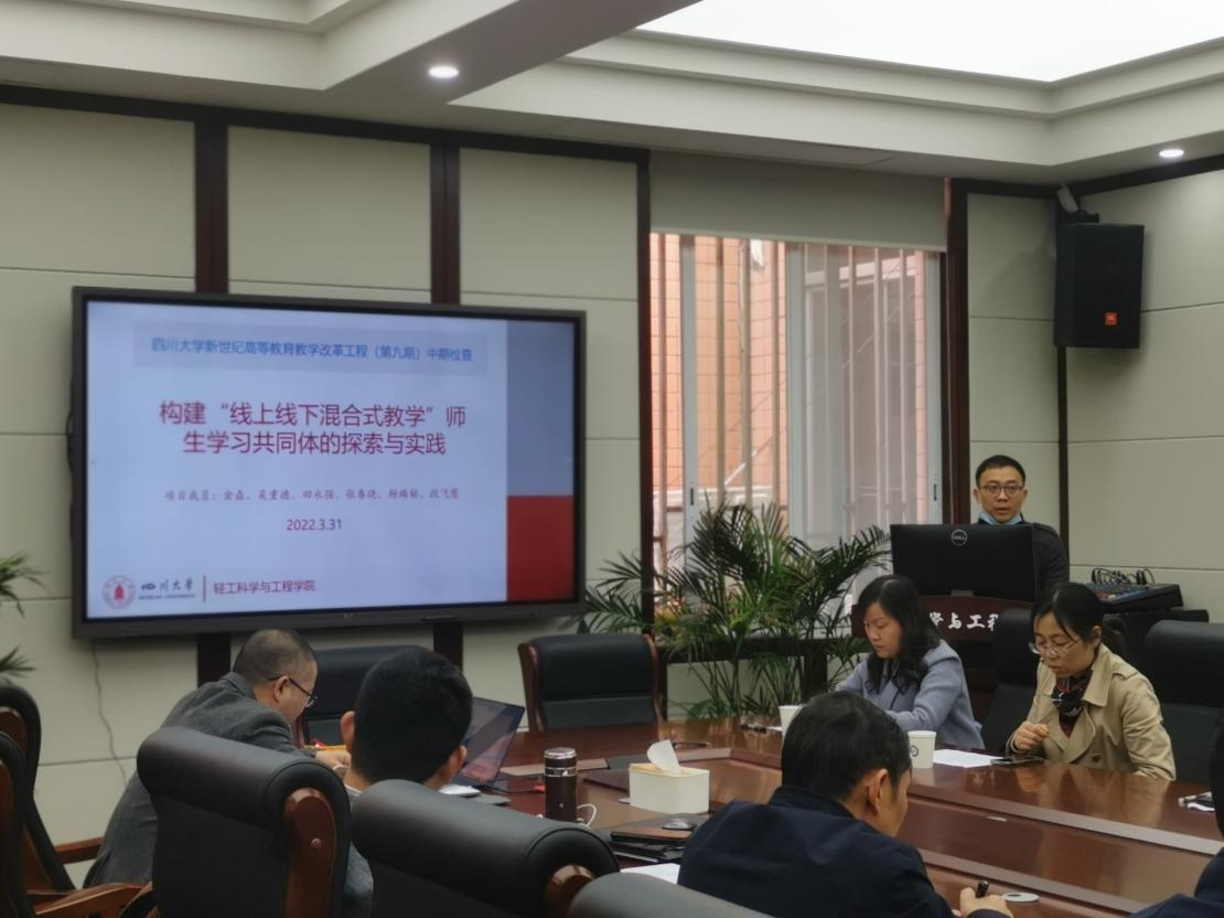 2022�4�1日下午,轻工科学与工程学院教师教学发展活动暨高等教育教学改革研究项目中期检查交流会在纺工附�205会议室顺利召开。本次交流会共有15项教改项目参与中期检查,其中教育部新工科教改项目1项,教育部新文科教改项目1项,校级教改九期项目6项,院级项目7项。学院李天富书记、彭必雨院长、冯国涛副书记、周建飞副院长、教指委成员、各系所负责人和各项目主要团队人员等出席了会议。会�由彭必雨院长主持�