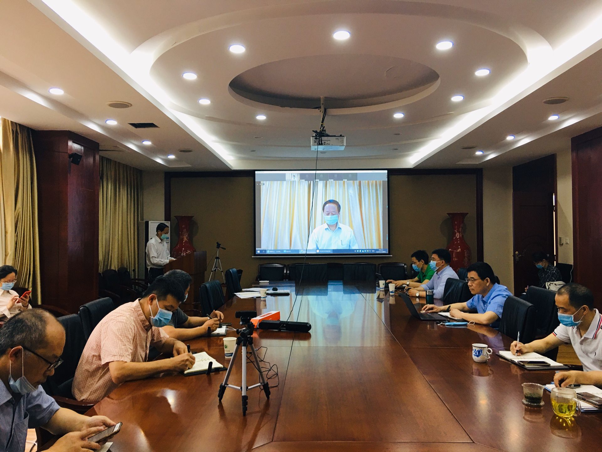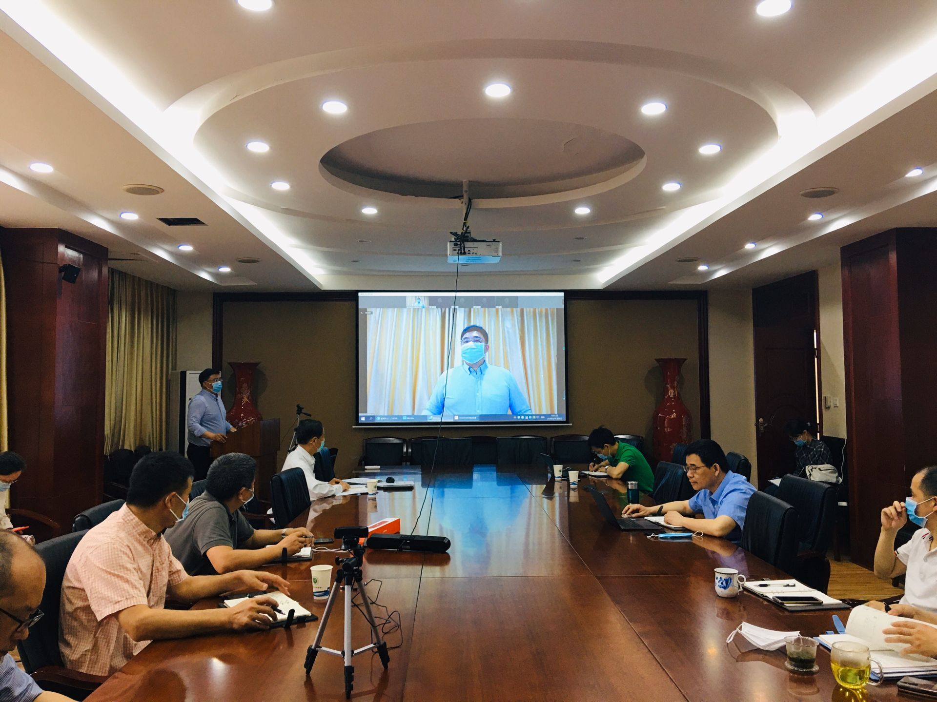 按照既定安排,AV研究所 2020年5月8日上午召开了本学期教职工党课及形势报告会,本次报告会同时也是学院巩固校内巡察成果的一项重要举措学院领导班子、党委委员、纪委委员、教职工党支部书记、系主任、科级干部在皮革楼209会议室主会场参会,其余教师通过welink线上参会。何有节院长主持会议,学院党委书记刘晓虎同志作了题为《齐心协力、奋力拼搏、共克时艰、加快发展》的报告。