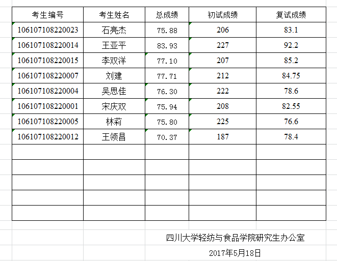 现将轻纺与食品学院2017年博士研究生招生入学成绩进行公示。如有问题或意见,自公示之日起十个工作日内,实名制反映至轻纺与食品学院纪委办公室。邮箱[email protected],联系电话85461730。此名单不包括非公开招考考生。