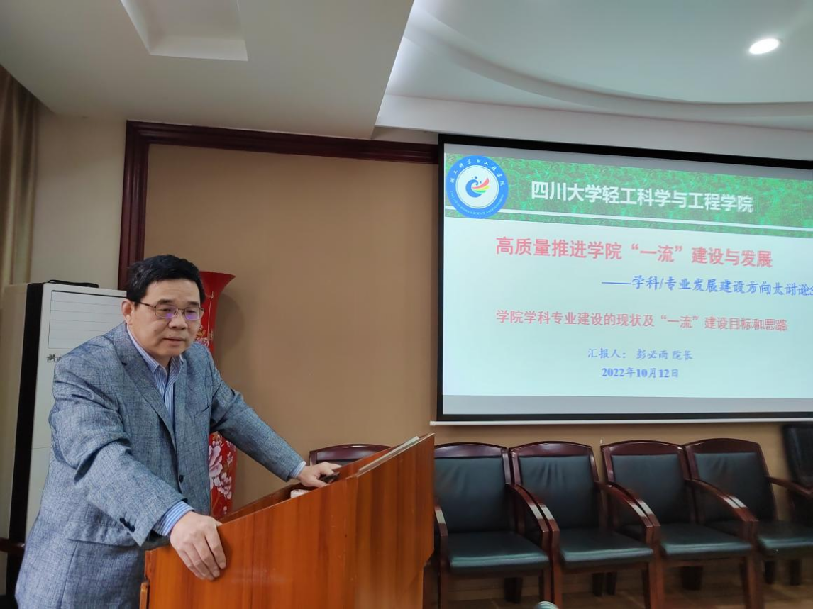 2022年10月12日下午,学院在皮革楼209会议室召开高质量推进“一流”建设与发展——学科/专业发展建设方向大讨论。石碧院士、学院班子成员、教授委员会成员、院本科教指委主要成员、各系所主任、专业负责人、教研室主任、科级干部等出席会议。本次会议由学院党委李天富书记主持。