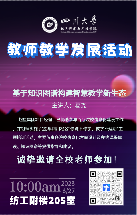 望江校区纺工附楼205会议室开展了主题为“基于知识图谱构建数字教学新生态”的教师教学发展活动。