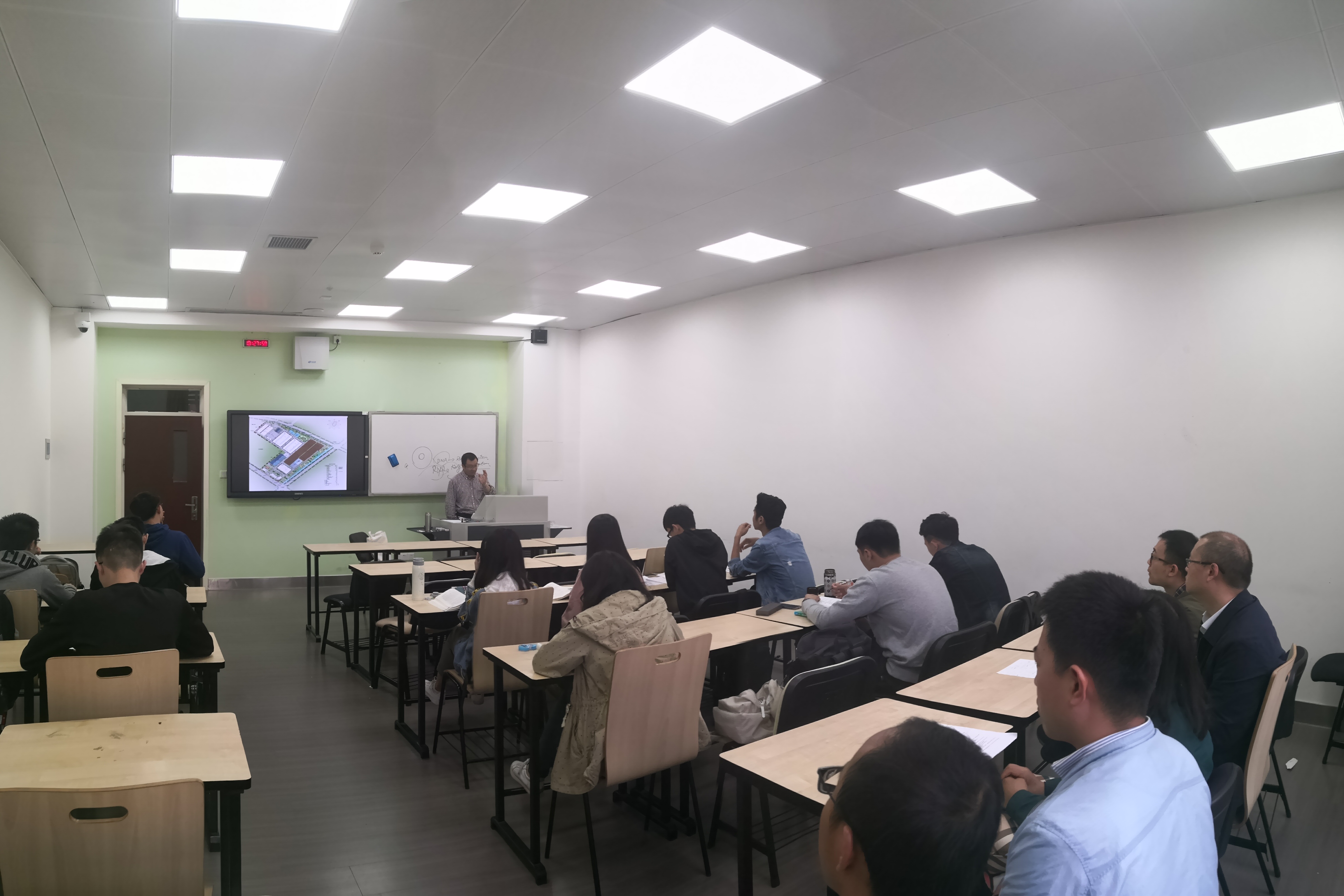 本次活动分为两个阶段,首先,周荣清教授针对《生物工程设计》课程进行了教学演示。他以众多具有代表性的生物工厂的设计图为切入点,组织和引导学生通过讨论,独立分析出在生物工厂设计中需要注意的若干问题。课后,教研室老师对课堂教学的方法和多样性进行讨论。