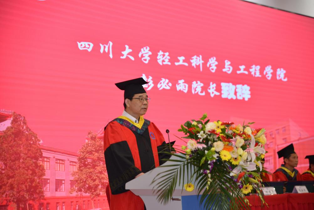毕业暨授位典礼在庄严的国歌声中正式开始。首先,彭必雨院长代表学院党政致辞。彭院长�2022届圆满完成学业,获得学士、硕士、博士学位的同学们表示最热烈的祝贺!向前来参加毕业典礼的各位领导、导师代表、家长代表表示衷心的感谢!彭院长同与会人员一起回顾了学院近年来在学科建设、人才培养、科学研究等方面取得成绩。彭院长指出,这些成绩的取得离不开学院全体教师的集体智慧与辛勤工作,离不开学院全体同学的积极配合与全面参与,学院学科与专业的良好发展也定将是提升毕业生学历价值与社会认同的重要载体。过去的成绩永远属于我们每一位轻工人,未来的发展仍需全院师生和轻工校友们的鼎力支持。同时,彭院长向毕业生提出三点希望。第一、志存高远、不忘初心,做一个目标明确与意志坚定的人,坚定的朝着自己的生涯目标迈进。第二、脚踏实地、砥砺奋斗,做一个勤奋务实与追求卓越的人,用最美的奋斗去创造属于你的最美人生。第三、增强本领、服务行业,做一个常怀感恩与回报社会的人。希望同学们在奋斗中成就自我、回报社会,真正成为新时代的主人,在新的人生征程中创造出无愧于时代的辉煌业绩�