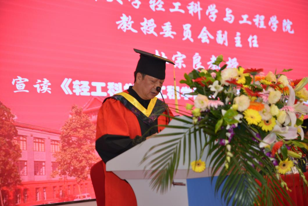 学院教授委员会副主任杜宗良教授宣读《轻工科学与工程学院2022届毕业生授位决定》�