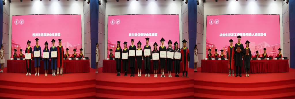 学院党委李天富书记宣读《轻工科学与工程学院2022届省优秀毕业生名单》和�2022届毕业生校友工作年级联络人聘任决定》,李天富书记、彭必雨院长、周建飞副院长分别为四川省优秀毕业生和校友联络人颁奖�