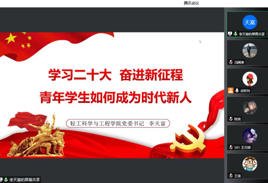 2022年12月9日下午,学院党委李天富书记为2020级本科生讲授“学习二十大,奋进新征程,青年学生如何成为时代新人”的形势与政策课。2020级辅导员余昕玲老师以及2020级全体本科生以线上的形式参加了本次学习。