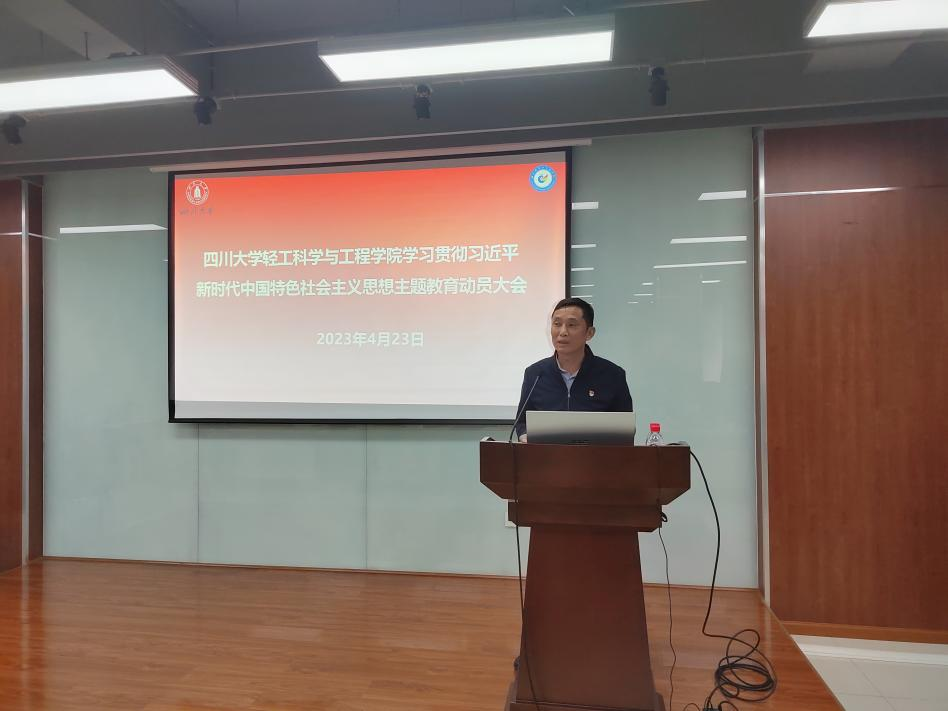 李天富书记传达了四川大学党委甘霖书记在学校主题教育动员大会上的讲话精神与工作要求,并结合学院实际,要求全院师生要深刻认识开展主题教育的重大意义,切实把思想和行动统一到党中央部署要求上来。李书记指出,要充分认识到在党内集中开展主题教育是历史的必然要求、是学院落实立德树人根本任务和实现高质量发展的必然要求、是学院推进全面从严治党向纵深发展的必然要求。李书记强调,要准确把握目标要求,推动主题教育各项任务落到实处。要牢牢把握“学思想、强党性、重实践、建新功”总要求,紧紧锚定“凝心铸魂筑牢根本、锤炼品格强化忠诚、实干担当促进发展、践行宗旨为民造福、廉洁奉公树立新风”的目标任务。李书记要求�学院各级党组织要加强�织领导,确保主题教育取得扎实成效。通过开展学习贯彻习近平新时代中国特色社会主义思想主题教育,推动全院党员、干部更加深刻领�“两个确立”的决定性意义,更加自觉增强“四个意识”、坚定“四个自信”、做到“两个维护”,始终在思想上政治上行动上同以习近平同志为核心的党中央保持高度一致。要切实提高思想认识,以高度的政治自觉、饱满的政治热情、严肃的政治态度,积极投身主题教育,推动轻工科学与工程学院高质量发展�