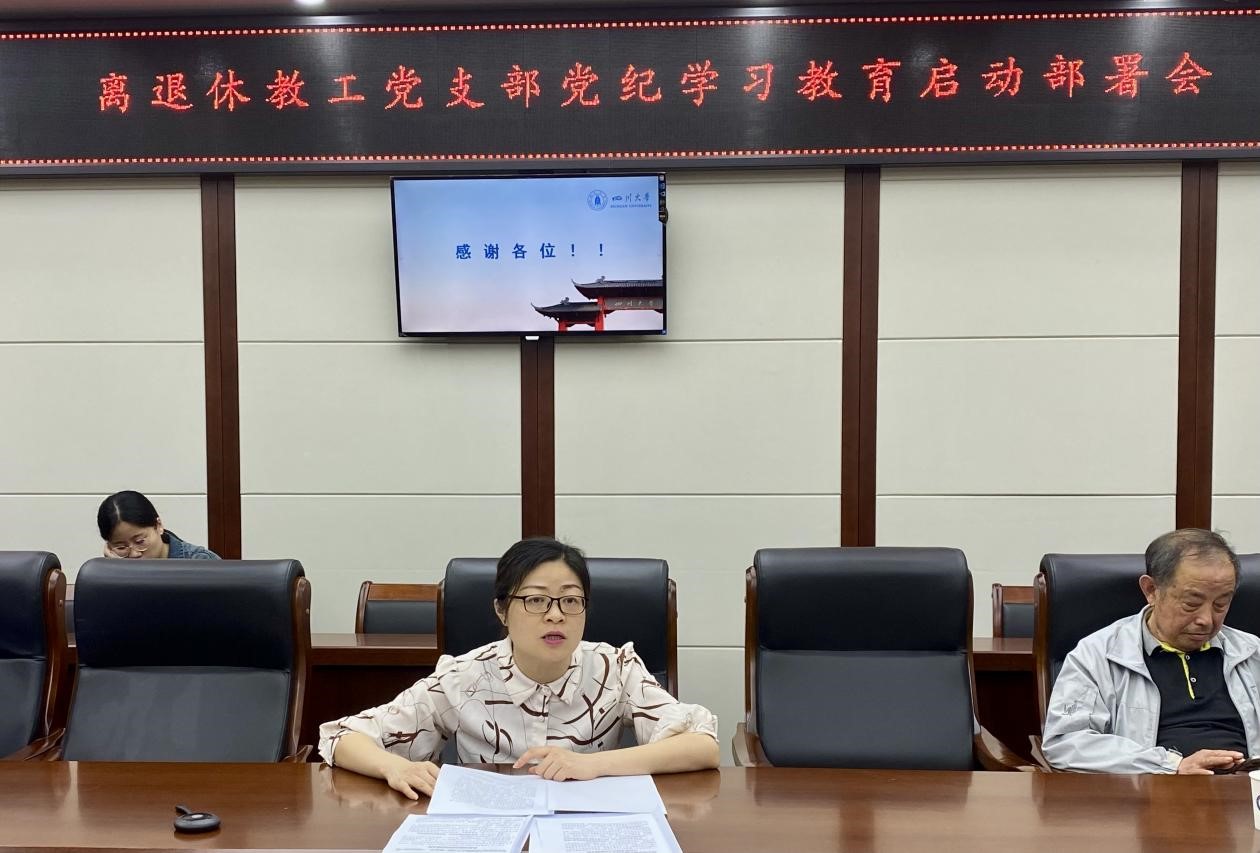 2024年4月18日,离退休教工党支部在纺工附楼205会议室召开党纪学习教育动员部署会。