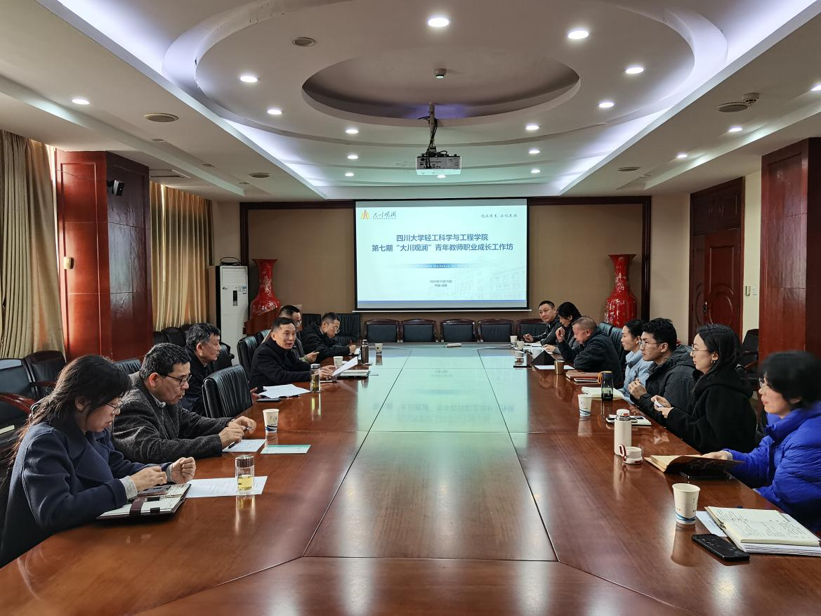 在皮革楼209会议室举办第七期“大川观澜”青年教师职业成长工作坊。学院班子成员、教授委员会代表、国家高层次人才代表、部分青年教师参会。学院党委李天富书记主持会议。