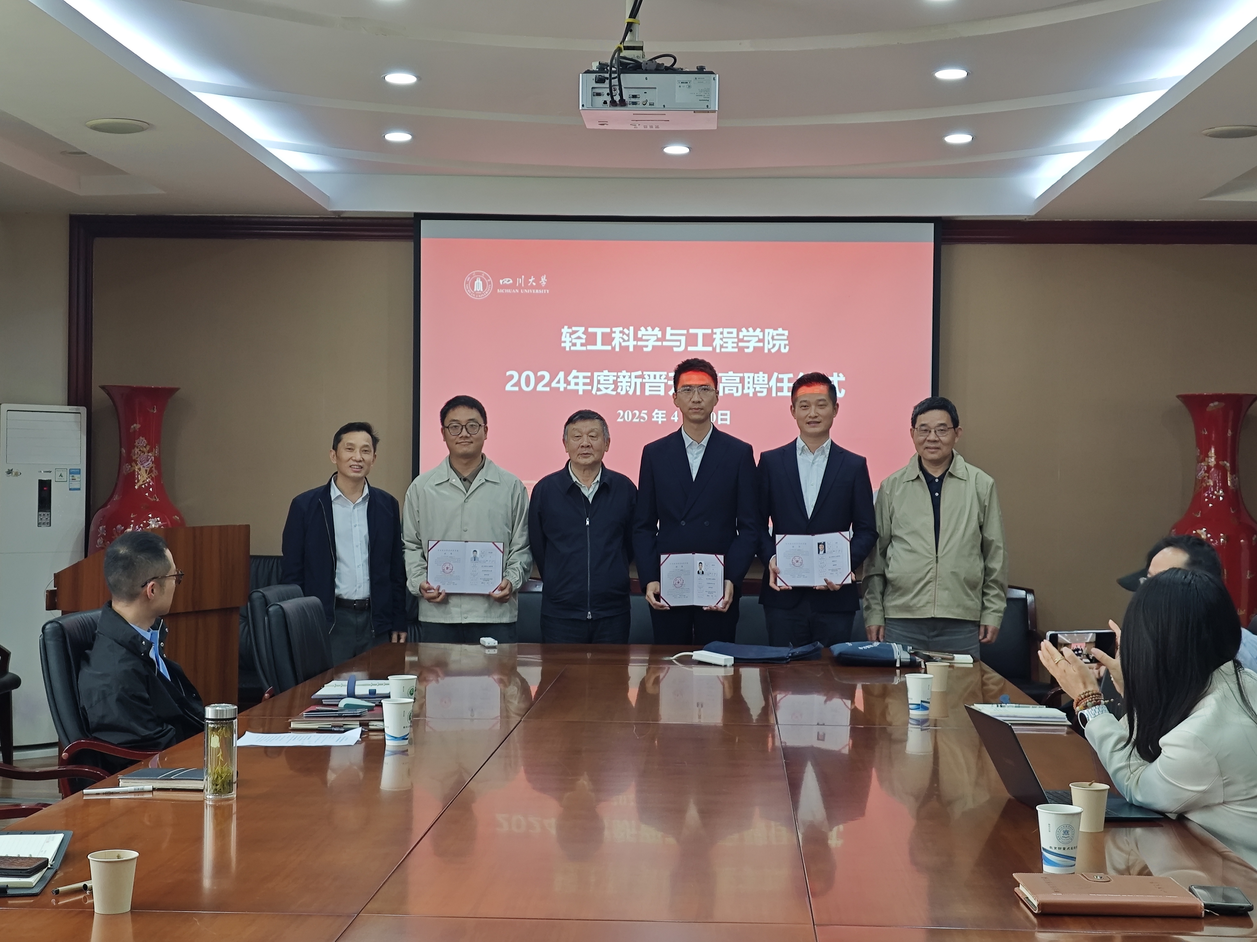 在皮革楼209会议室成功举办第四期“大川观澜”青年教师职业成长工作坊暨2024年度新晋升副高聘任仪式。学院班子成员、教授委员会代表、部分青年教师参会。学院党委李天富书记主持会议。