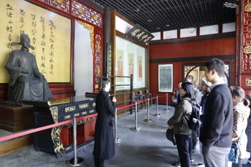 随后,全体教师参观了位于新都区新都镇的“杨升庵博物馆”。在讲解人员的介绍下,学习了“一门七进士,宰相状元家”杨氏家族的传家祖训“家人重执业,家产重量出,家礼重敦伦,家法重教育”。了解到杨升庵谪戍云南的三十多年里,积极开展讲学活动,传播中原文化,整理少数民族典籍,为培养云南本地的文人学者和传播民族文化做出了卓越贡献�
