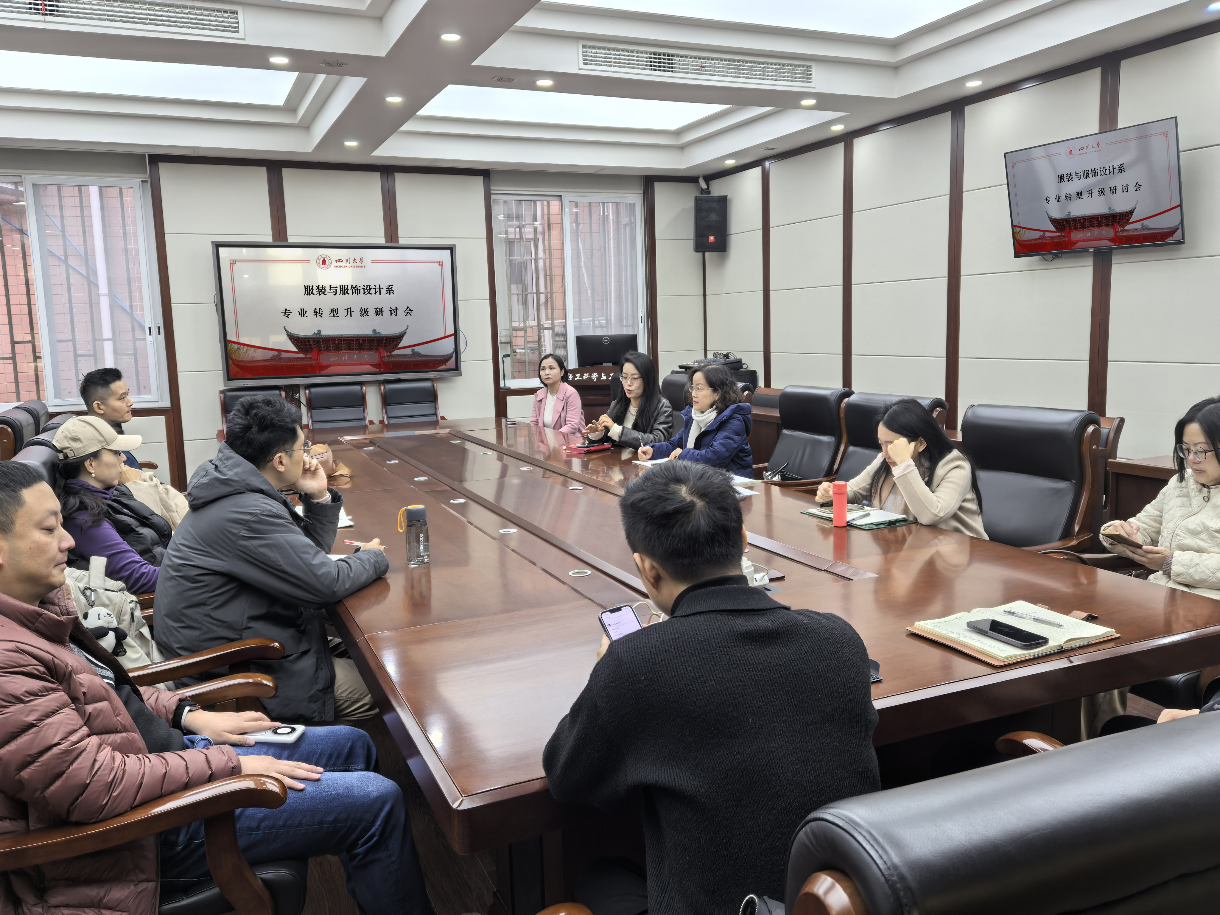 望江校区纺工附楼205会议室举行了专业转型升级研讨会。服装与服饰设计系全体教师参加了此次活动,系主任杨璐铭教授主持研讨会。